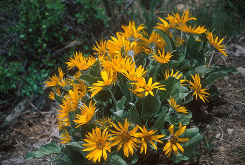 Arrowleaf Balsamroot Wind River Range Arrowleaf Balsamroot is an early summer bloomer and is quite prolific in the mountains around Pinedale. |