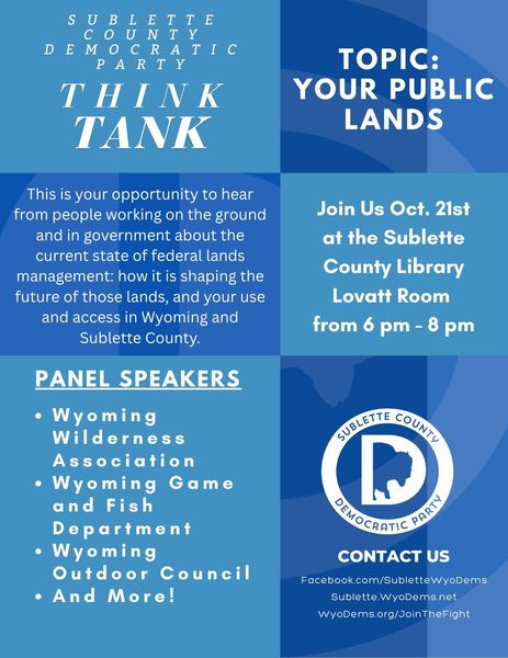 Sublette County Democratic Party Think Tank Oct. 21 (posted 10/12/2025)