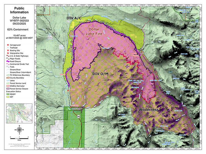 Wednesday, September 24th will be the final update for the Dollar Lake Fire. Fire information is posted on Inciweb at https://inciweb.wildfire.gov/wybtf-dollar-lake-fire
