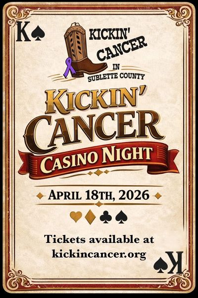 Join Kickin’ Cancer in Sublette County for their Annual Fundraiser April 18th at the Southwest Sublette County Pioneers Senior Center in Marbleton Wyoming. This year is casino themed. Every chip and raffle ticket purchased goes directly to helping our neighbors in Sublette County (and La Barge) in their ongoing fight against cancer. The evening will include dinner, a cash bar, black jack, craps, and roulette tables for a chance to win exciting local raffle packages, and silent auction with items donated from generous locals. Tickets are limited to this event and can be purchased online at kickincancer.org. Tickets are $40 online/$50 at door. If you or your business would like to donate anything to our online or in-person silent auction please reach out: kickincancersc@wyoming.com, 307-360-0113 We could not do what we do without the wonderful support of our community. For over 20 years Sublette County has been showing up for Kickin’ Cancer and supporting those in their fight against cancer. Let’s keep the tradition alive and make this another successful year raising funds to Kick Cancer! Please join us April 18th, 5pm-10pm Southwest Sublette County Senior Center Marbleton, Wyoming