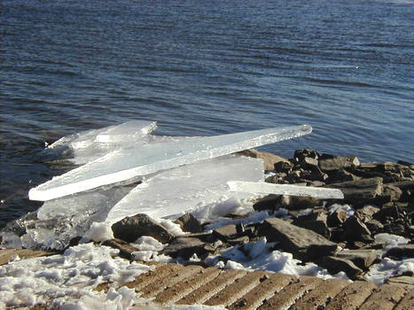 Ice chunks washed ashore on lower Fremont Lake boat ramp