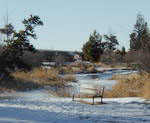 Looking upstream on Pine Creek standing on Harmony footbridge in the Pinedale Town Park, mid-January, 2000.
