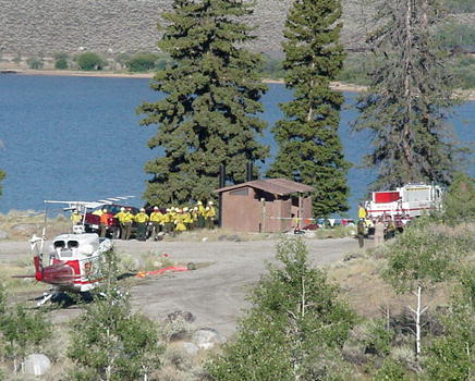 Half Moon fire helibase on the Half Moon Lake boat dock area US Forest Service photo 3-D fire maps