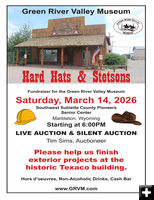 The Green River Valley Museum in Big Piney is holding their Hardhats & Stetsons fundraiser on Saturday, March 14, 2026. This event will be held at the Southwest Sublette County Pioneers Senior Center in Marbleton starting at 6:00PM. There will be a live auctio