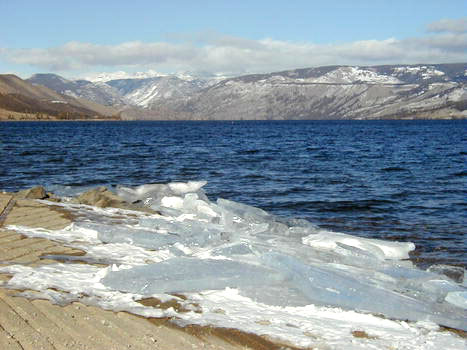 Ice chunks washed ashore on lower Fremont Lake boat ramp |