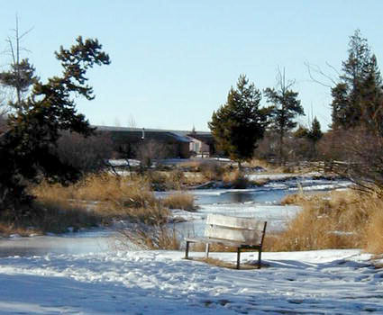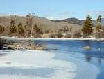 Looking downstream on Pine Creek from Harmony footbridge in the Pinedale Town Park, mid-January, 2000. |